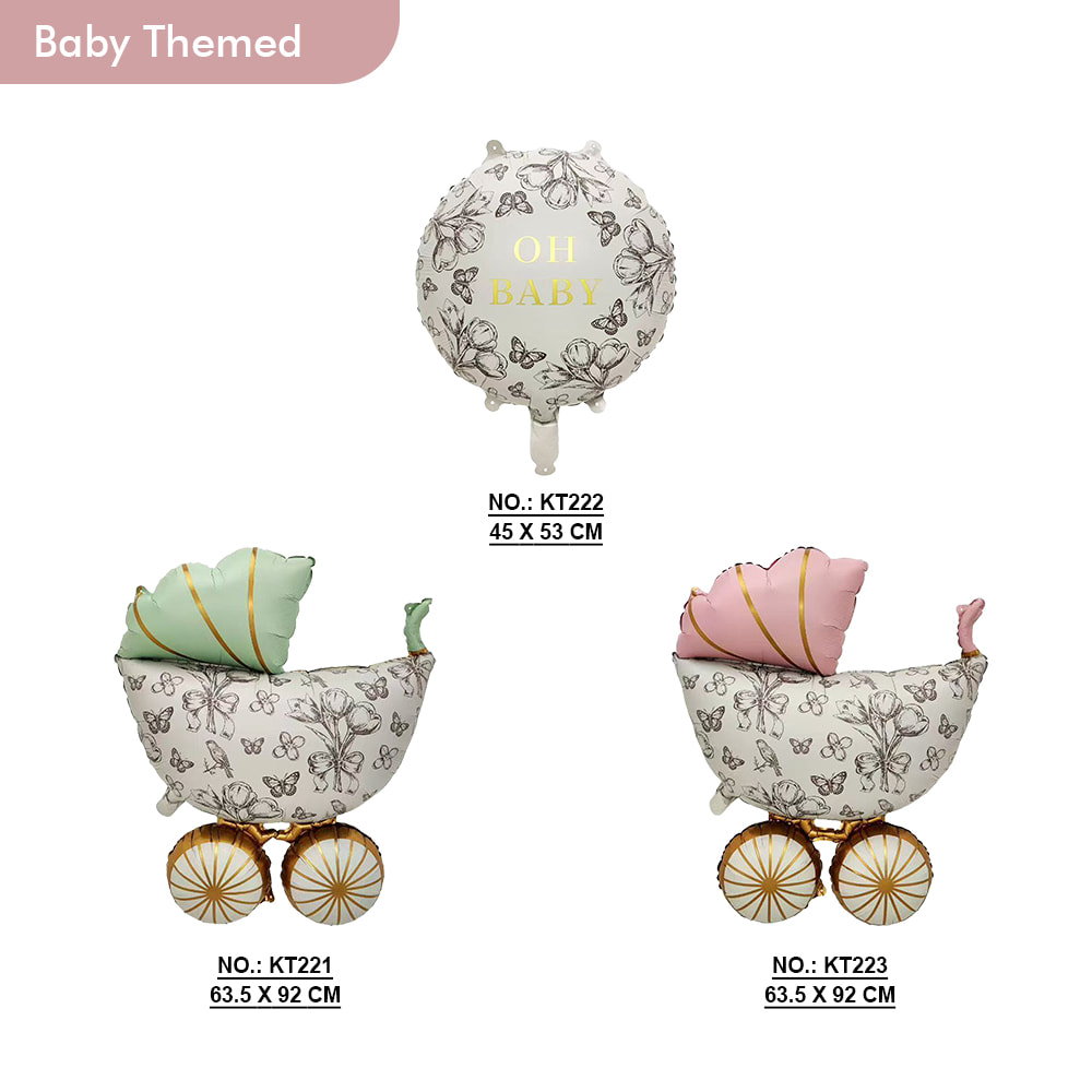 Air / HeliumWelcome your little one in style with Fungram’s Baby Themed Foil Balloons. Designed with soft pastel colors and delicate floral patterns, these balloons bring elegance and warmth to any baby shower, gender reveal, or newborn celebration. The “OH BABY” round balloon and vintage baby carriage balloons in mint green and pink add a charming touch to your special day.